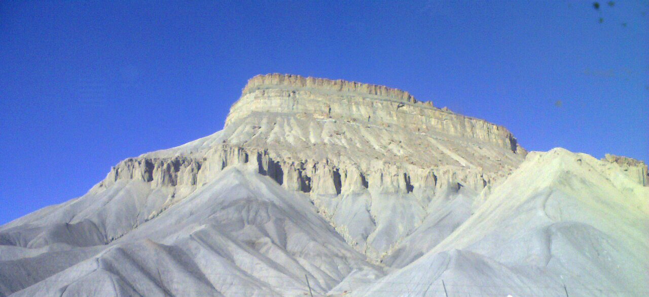 LOOK AT THAT! Blue sky! Nothing but blue sky shinning above! This was so cool. It looked like some giant walked up here, yelled out "FEE FY FO FUM! I will build a sand castle!" And it was like snap, right out of the blizzard we landed here. Oddly enough the map does not say we cross into a different season zone, like a hugemega time zone thinggy, we went from feeling like wishing each other Merry Christmas to screaming out Trick or Treat to drivers going by us.